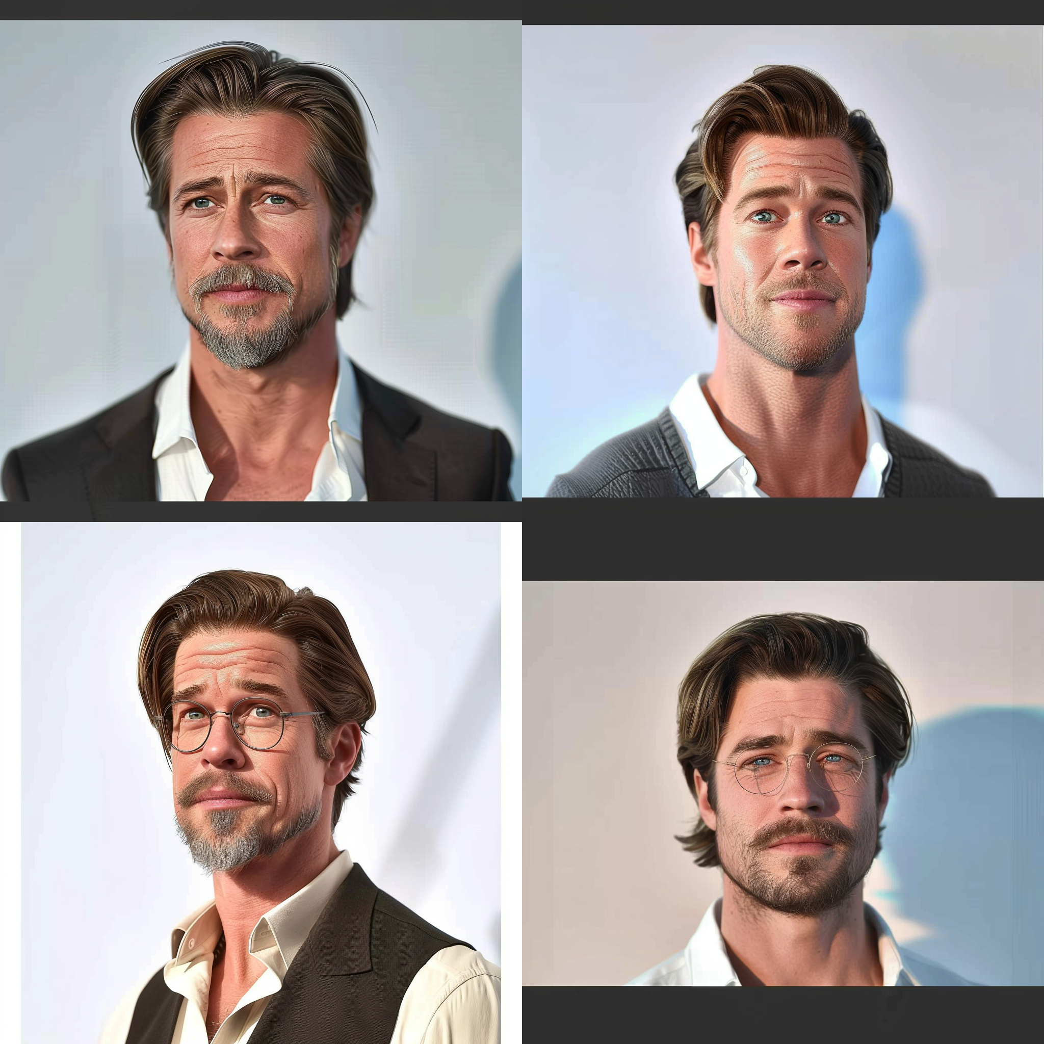 接下来用布拉德皮特的头像做参照(垫图),生成各种头像。