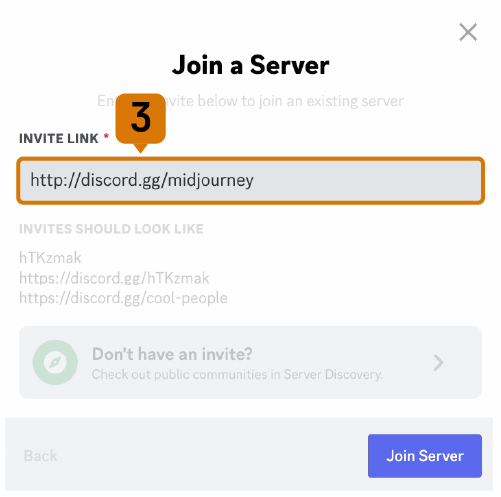 - 粘贴或键入以下URL:http://discord.gg/midjourney,然后按Join。