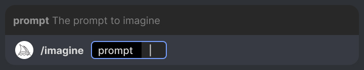 - 在消息字段中键入“/imagine prompt:”。您还可以从键入“/”时弹出的可用斜杠命令列表中选择**/imagine**命令。