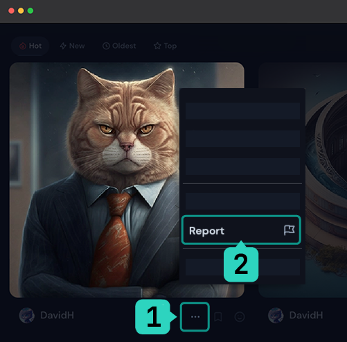 用户可以通过右键单击选择应用程序来标记任何图像以供版主审查,然后单击Discord或网站中的Report Job,方法是选择图像下的**...并单击Report**。